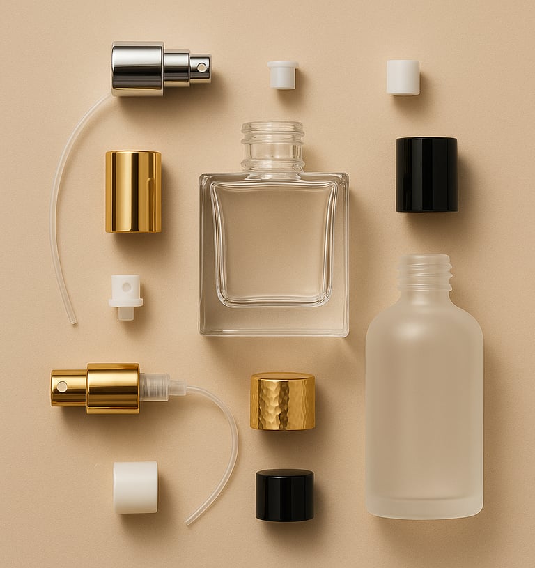 Tappi, spruzzatori e flaconi eleganti per valorizzare ogni tua creazione olfattiva.